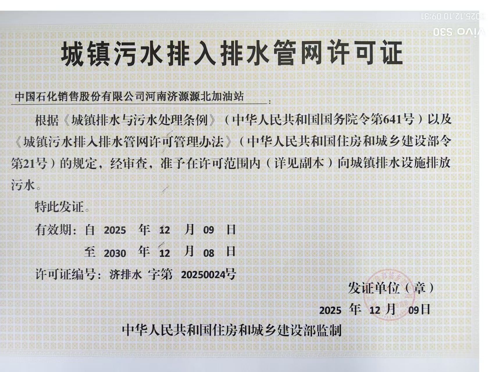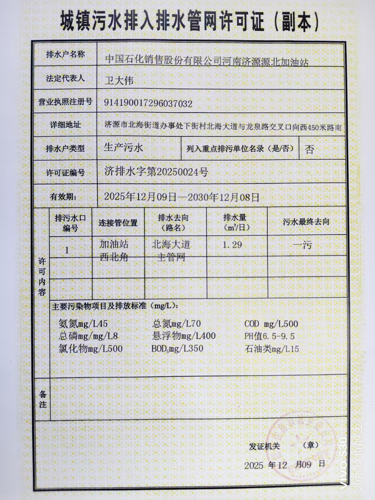 中国石化销售股份有限公司河南济源源北加油站