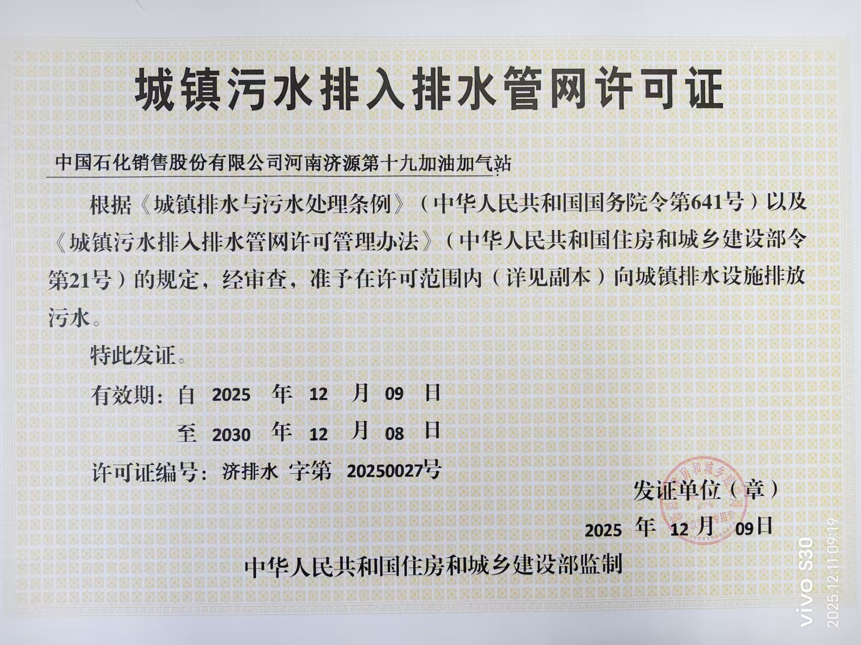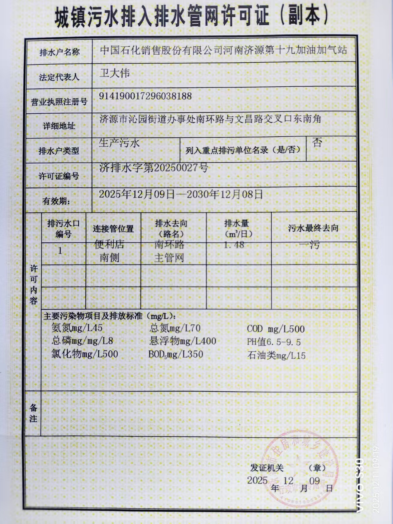 中国石化销售股份有限公司河南济源第十九加油加气站