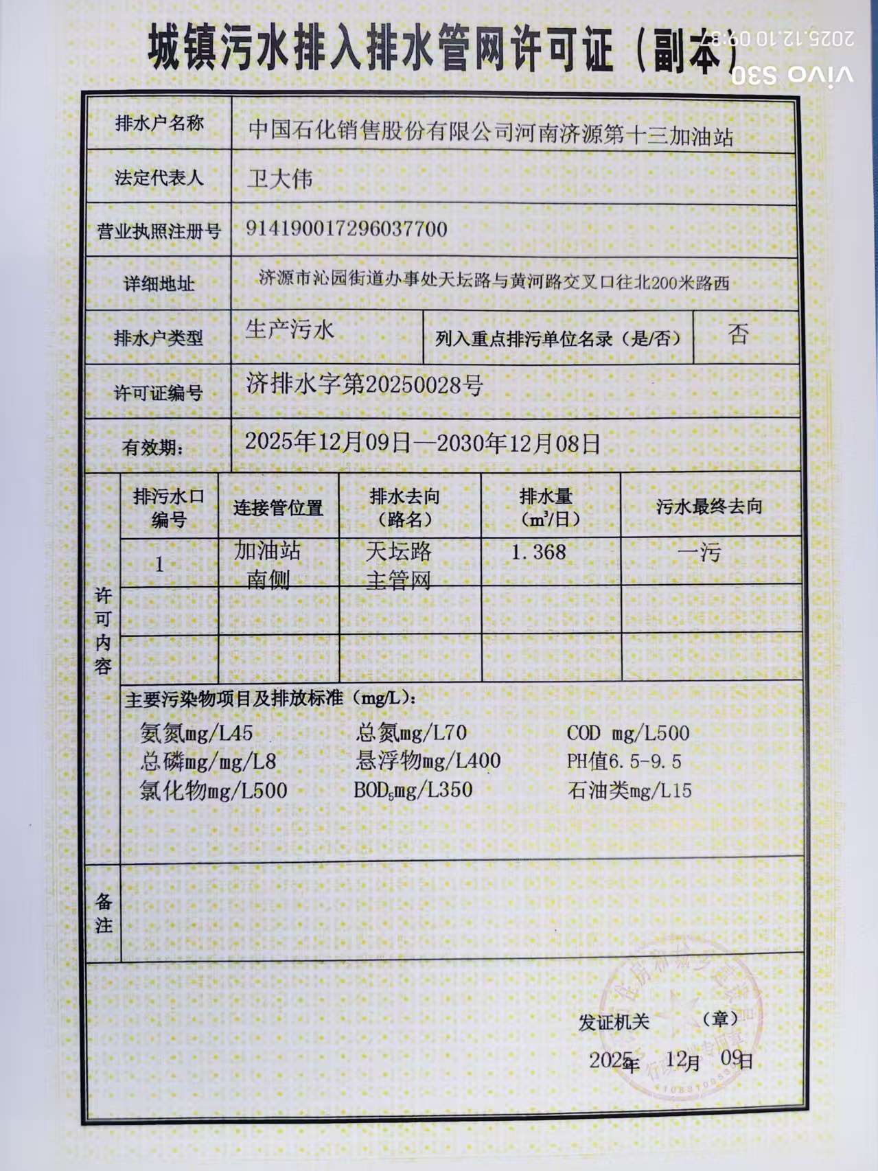 中国石化销售股份有限公司河南济源第十三加油站