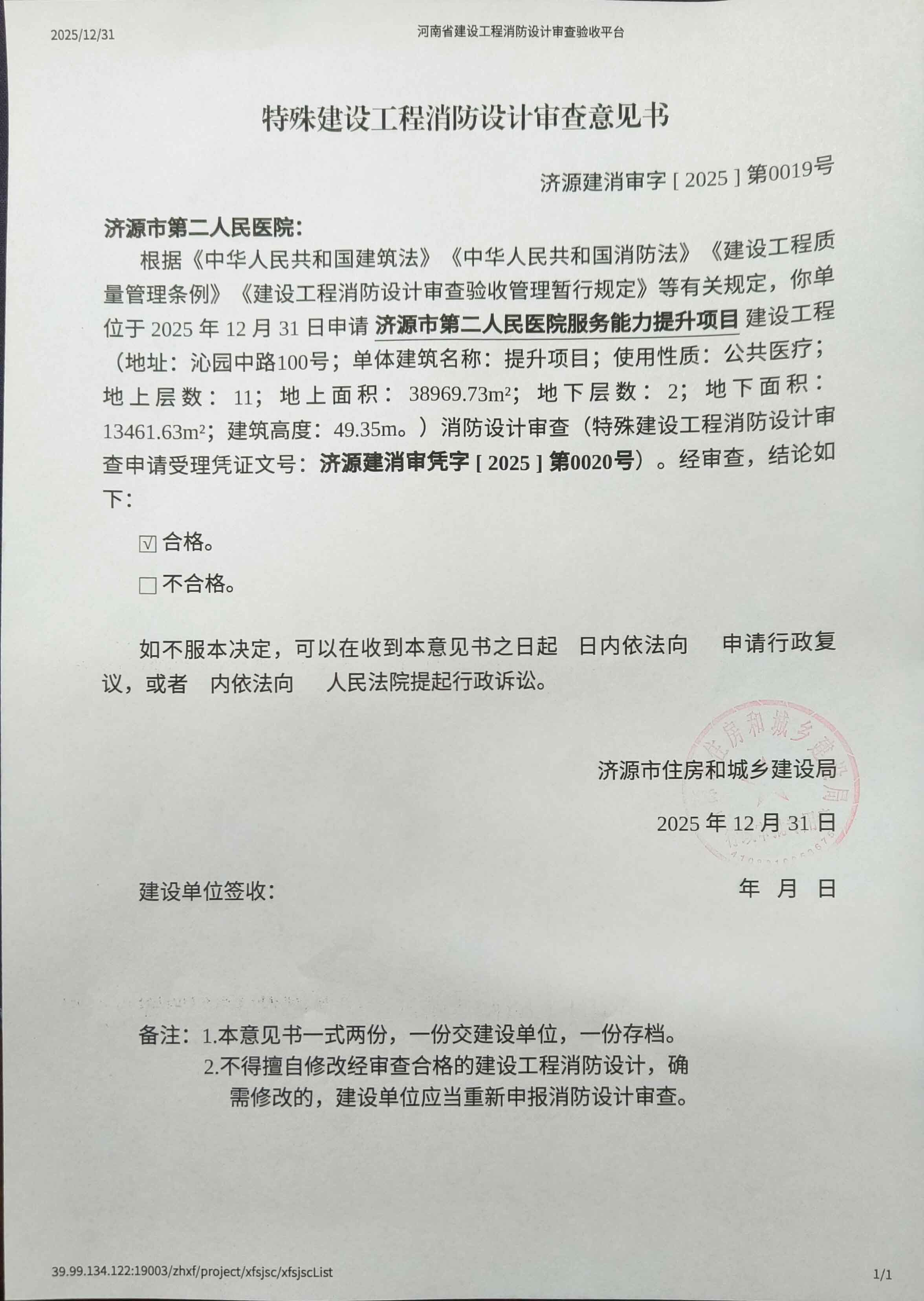济源市第二人民医院服务能力提升项目(特殊建设工程消防设计审查意见书)